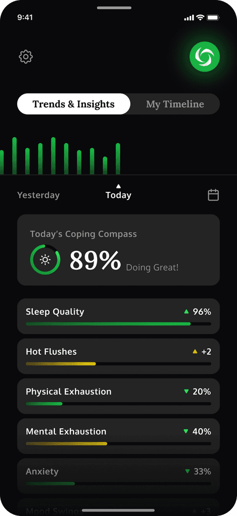 Log it and leave it. Come back to it when you need it. Leave Scyla and its Coping Compass to visualise your symptoms and data, having it on hand for you to look at when you need it. Makes sene of the Perimenopause journey in a safe environment.